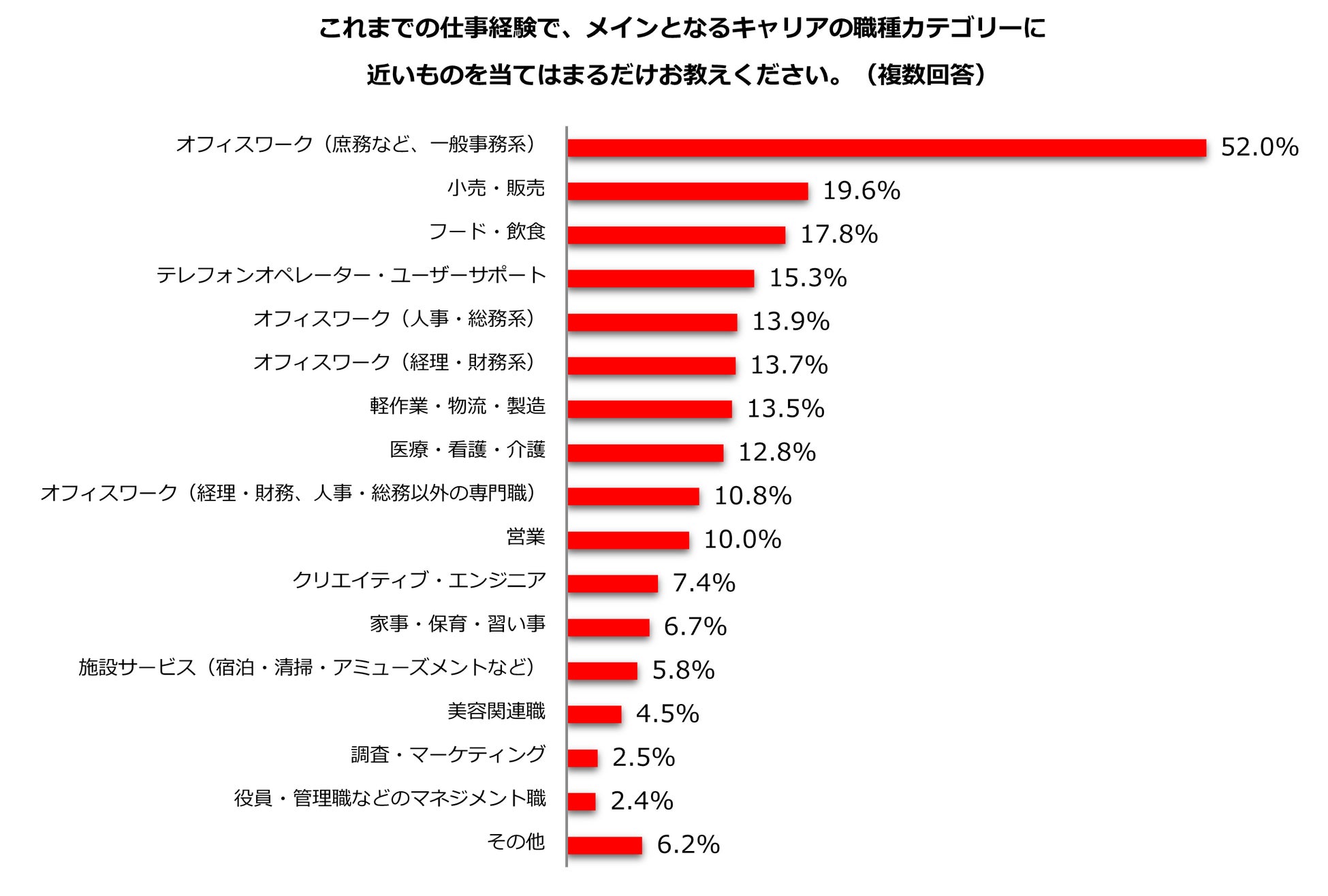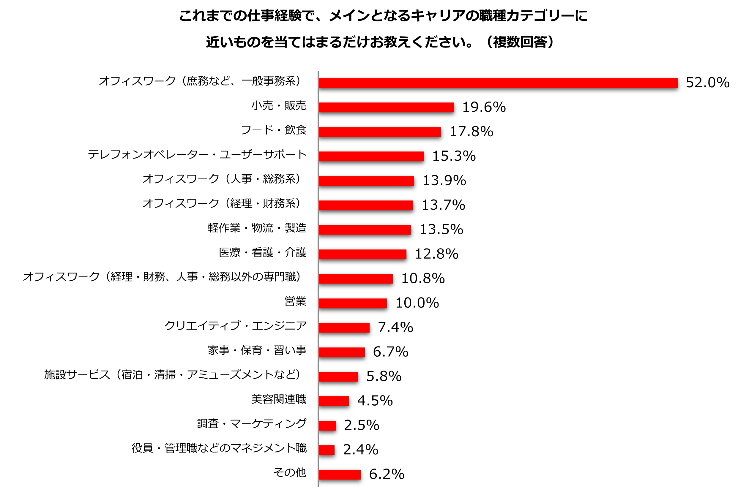 2.メインキャリアの職種「オフィスワーク(庶務など、一般事務系)」52.0%