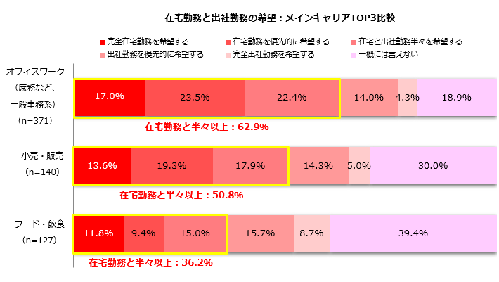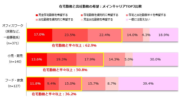 7.在宅勤務と出社勤務の希望比較②:メインキャリアTOP3/オフィスワーク系