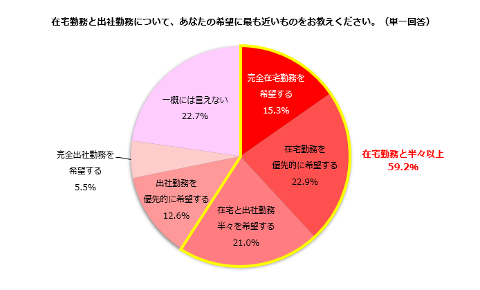 5.希望する働き方「在宅勤務と半々以上」59.2%