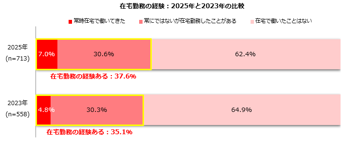 在宅勤務の経験「ある」37.6%、メインキャリア職種がオフィスワーク系だと経験者4割以上 ~しゅふJOB総研調査~