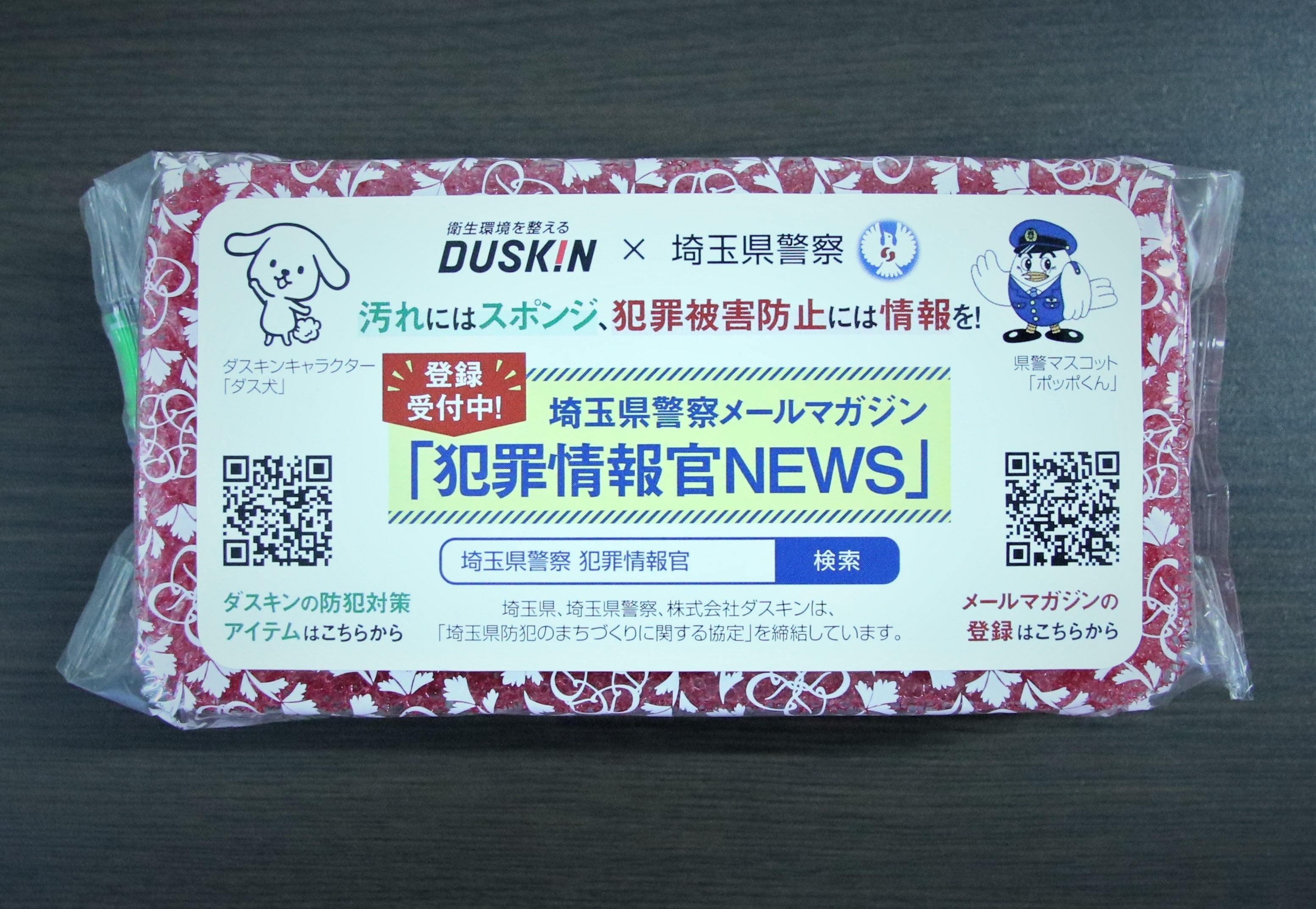 ダスキンはこれまで、特殊詐欺撲滅を目的とした「振り込め詐欺被害防止マット」の制作や、2025年10月には「犯罪情報官NEWS」の二次元コードを記載した台所用スポンジ約1万個を作成し、埼玉県警察と合同で防犯を呼びかける啓発活動を実施するなど、地域住民の防犯意識向上に向けた取り組みを継続してきました。