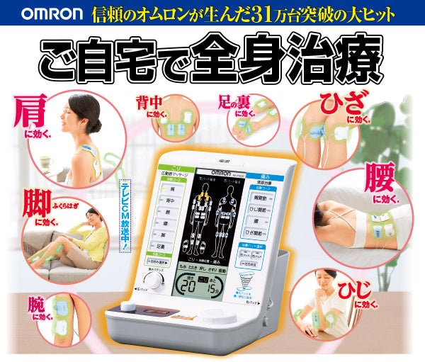 シリーズ累計※31万台を突破した本治療器は、医療機器を世界中に展開している信頼のオムロンが開発しました。これ一台で全身がスッキリ、ラク~になる喜びをぜひご体感ください。