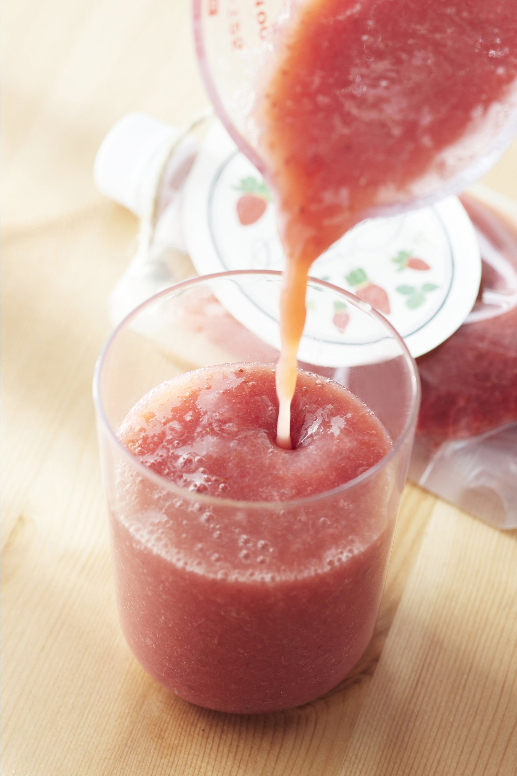 出荷できなかったいちごも、味はお墨付き。これをジュースにして冷凍すれば、旬を過ぎてももっと長く楽しんでもらえる!何より、香りもよくて味も濃い、感動するほどおいしいこのいちごジュースを、みんなにも知ってほしい。そんな想いから“青木さんちのいちごジュース”は生まれました。