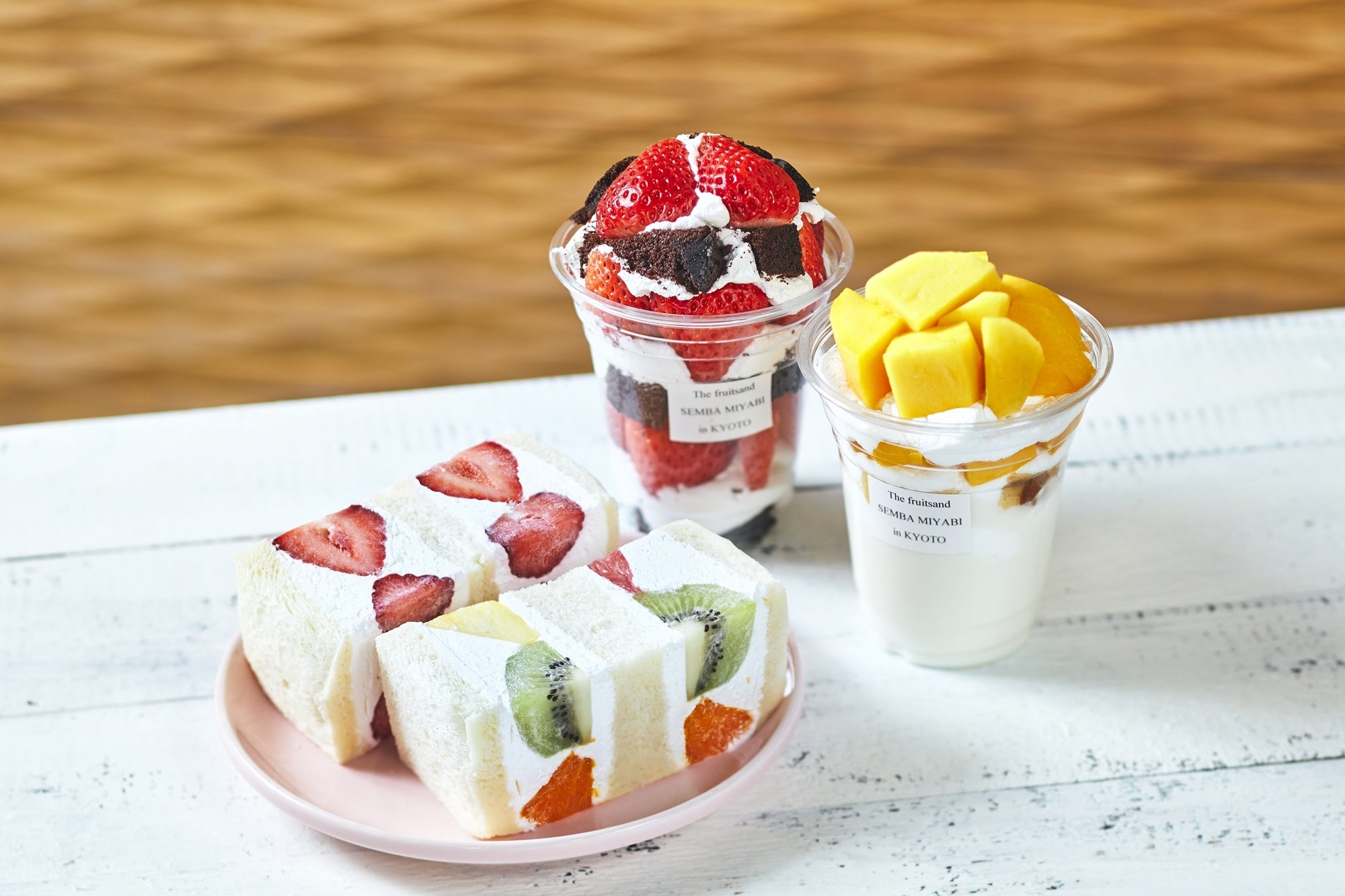 京都で1974年から続くフルーツ屋で、創業当時からの看板メニューがフルーツサンドとゼリー。今回のフルーツサンドのために選んだのは、3代目店主小坂洋平さんがリスペクトする「渋谷農園」のブランドいちご“京の雫”。真っ赤ないちごは、完熟させることで甘さがギュッと凝縮!濃厚な味がダイレクトに伝わるよう、生クリームは甘さ控えめに、パンは主張しすぎない味を選んで薄切りに。いちごを引き立てるサポート役にまわりながらも、三位一体となったおいしさはまさに感動もの。ゼリーは、ゼラチンを減らして限界までやわらかくしたぷるっぷる食感。ふたの部分を搾ると、あふれるほどにしたたる果汁とゼリーが混ざり合って、果物そのものを食べているかのような感覚に。フルーツの底力を感じる2つのスイーツをぜひ!
