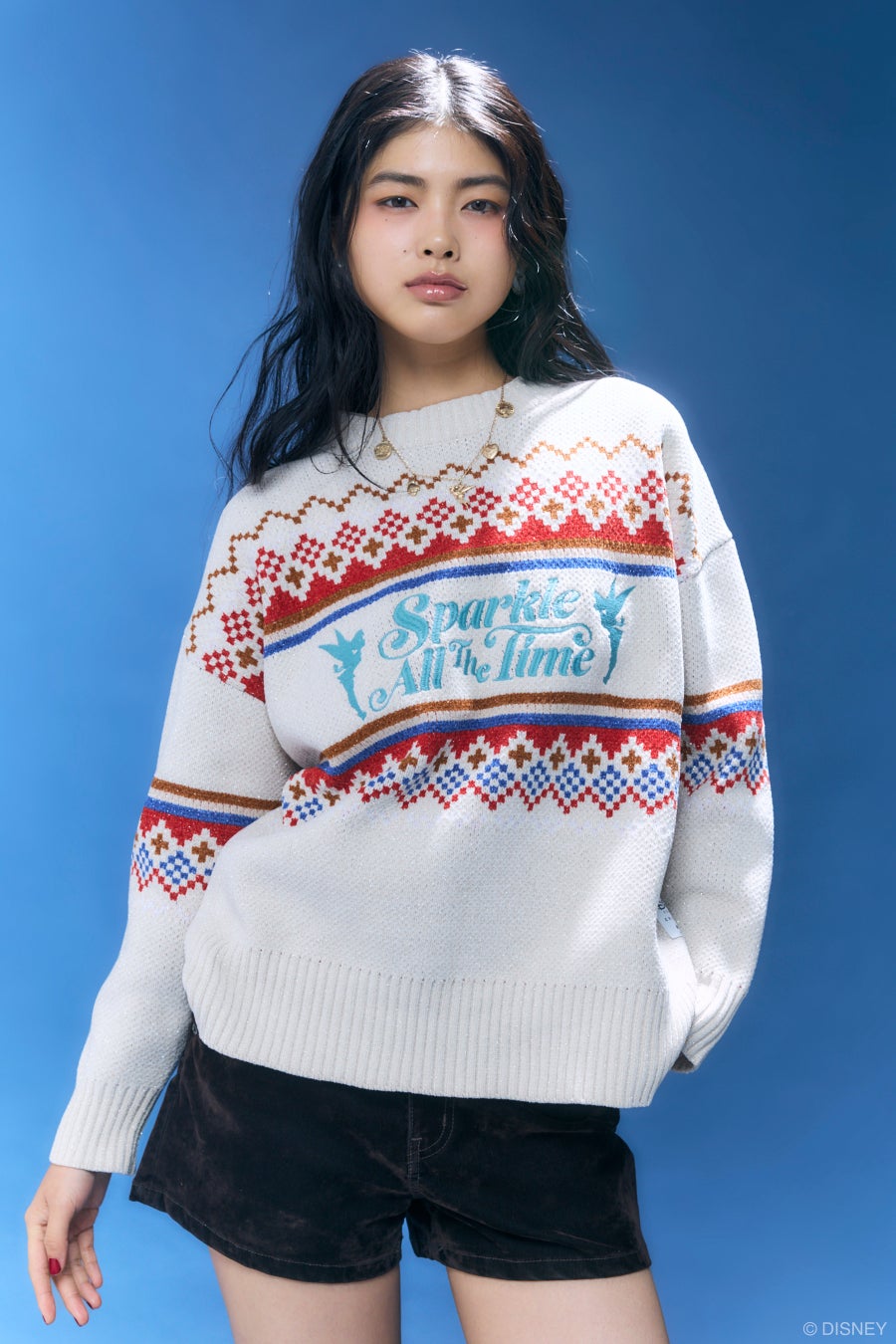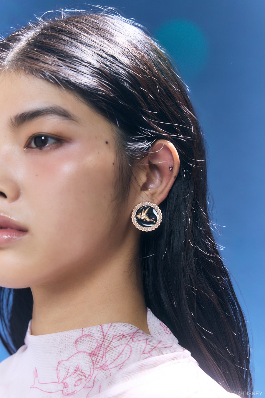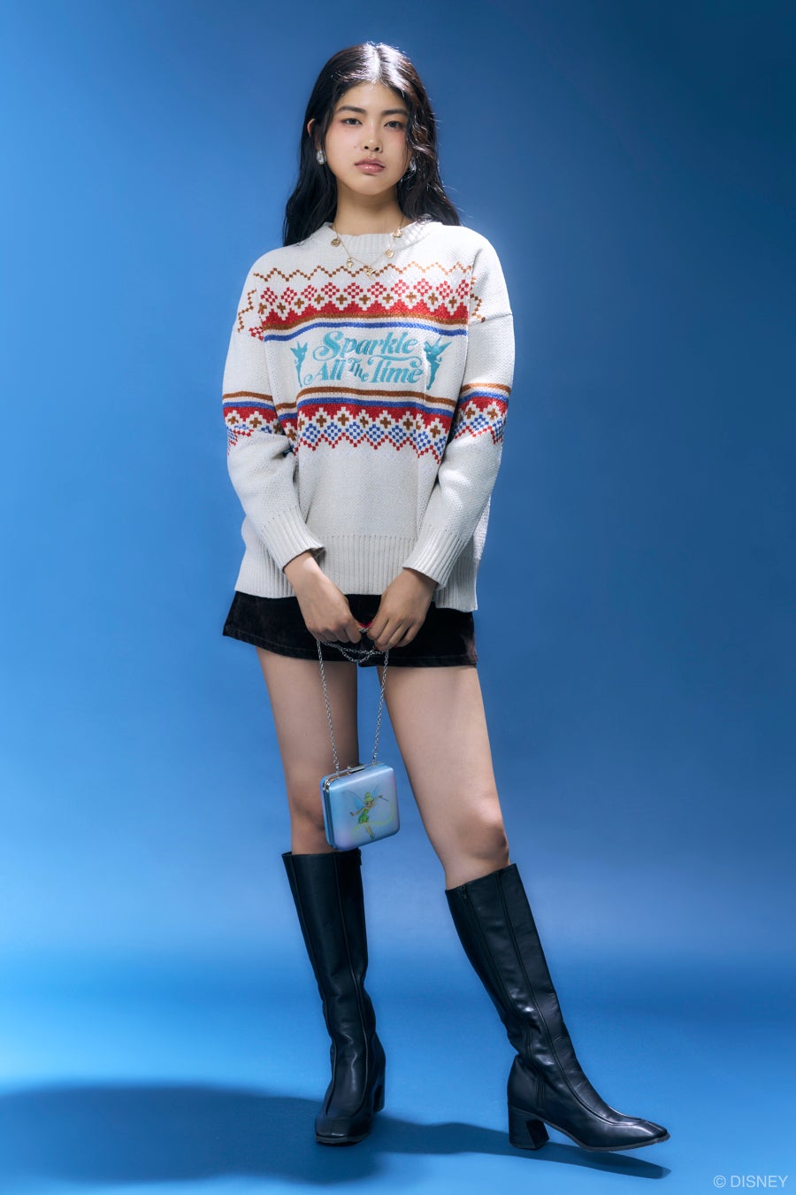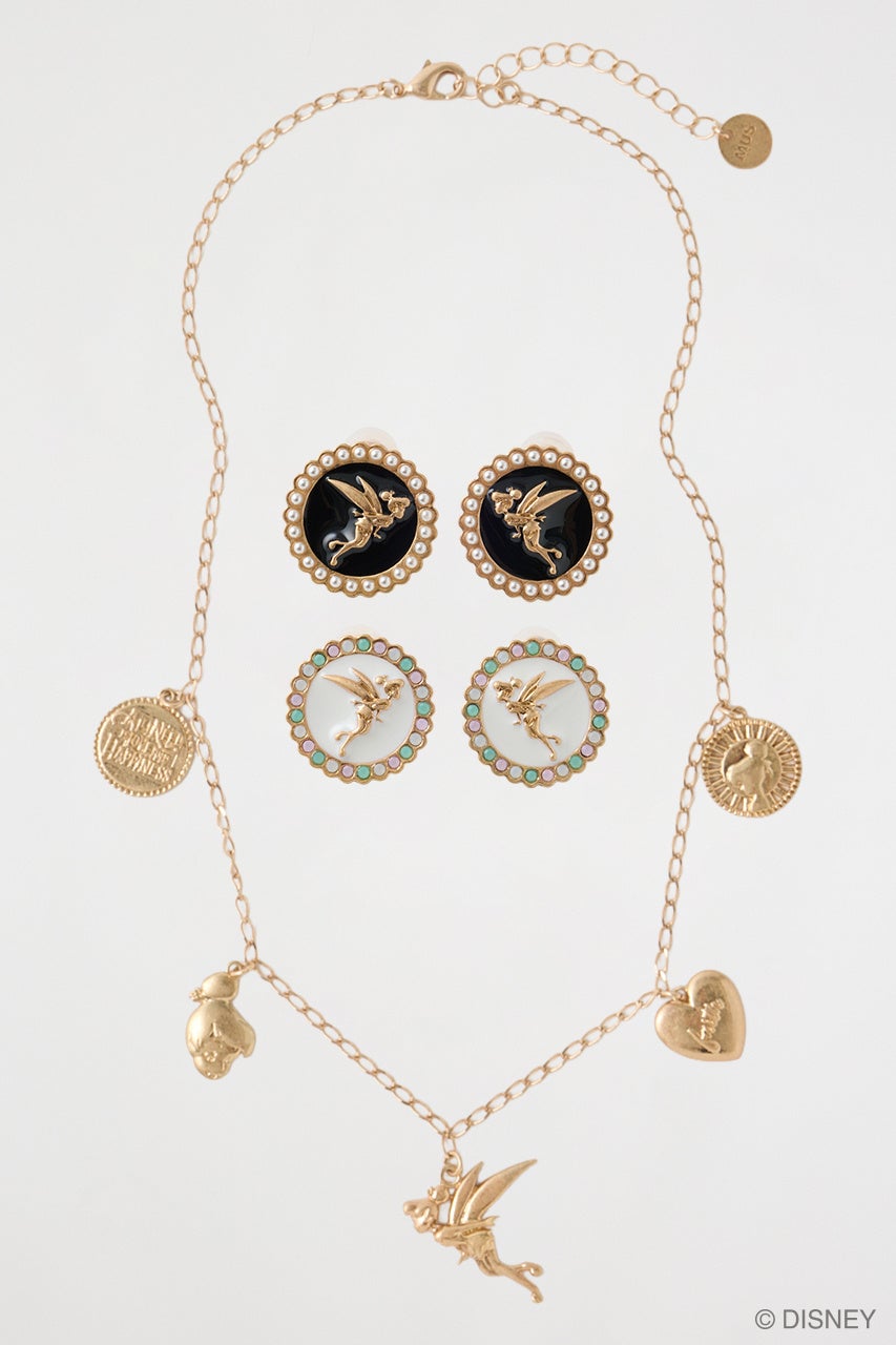 アクセサリー類には光沢感のある素材にシンプルなデザインのチェーンクラッチバッグ、パールやビーズを贅沢にあしらったイヤリング、ティンカー・ベルの様々なモチーフが連なるネックレスなど、細部にまでアイデアとこだわりを凝縮しています。