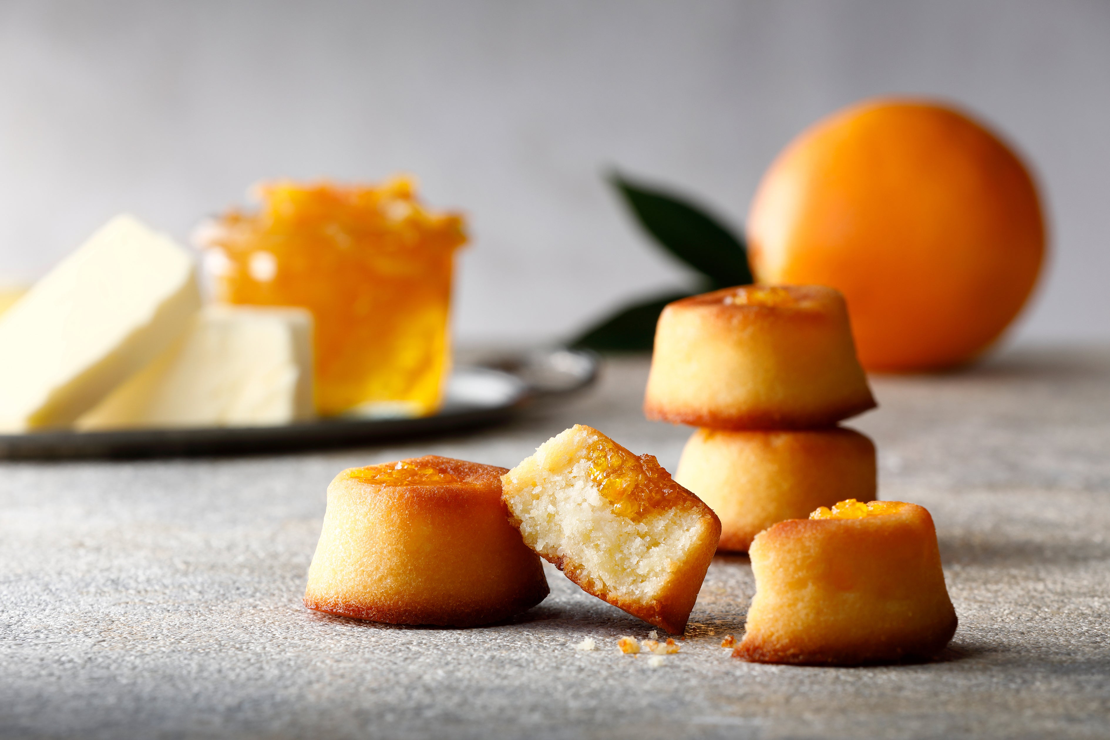 オレンジの美味しさをぎゅっと凝縮したマーマレードと、バター香るアーモンドケーキを一緒に焼き上げた「バターオレンジケーキ」。アーモンドケーキの生地に使用したニュージーランド産生乳のバターが、はちみつの甘さとラムの香りをバランスよくまとめ、しっとりとした食感を作り出します。