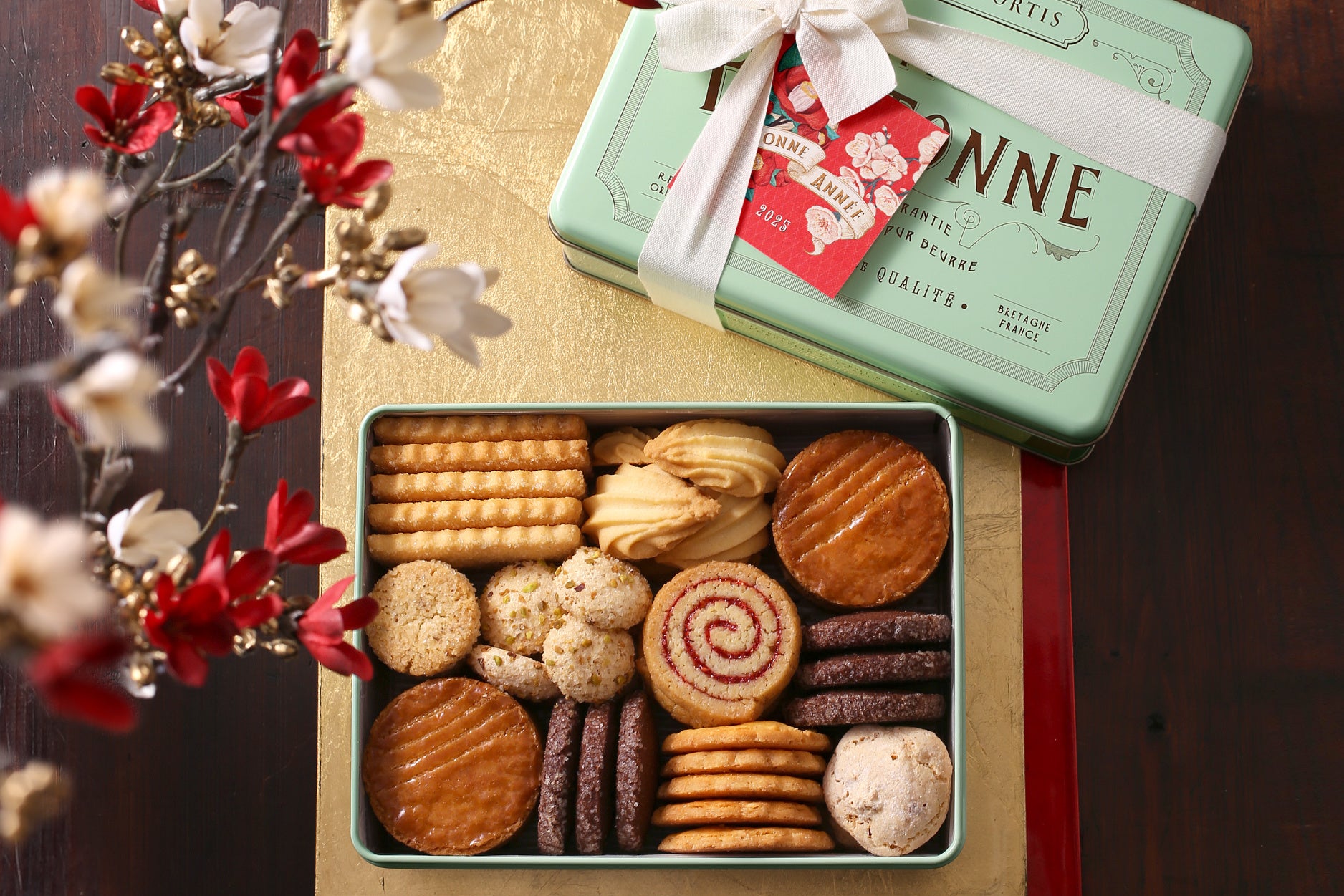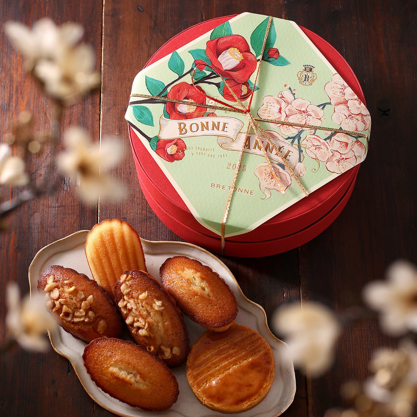 フランス・ブルターニュの美味しさをお届けする焼き菓子専門店「ビスキュイテリエ ブルトンヌ」では、お正月シーズンに合わせ、ガレット・デ・ロワやガトー・ナンテなどの焼き菓子、華やかな椿や梅のイラストをあしらった年末年始のご挨拶にぴったりなアソートギフトなどを販売します。各商品ご予約も承りますのでぜひご利用ください。