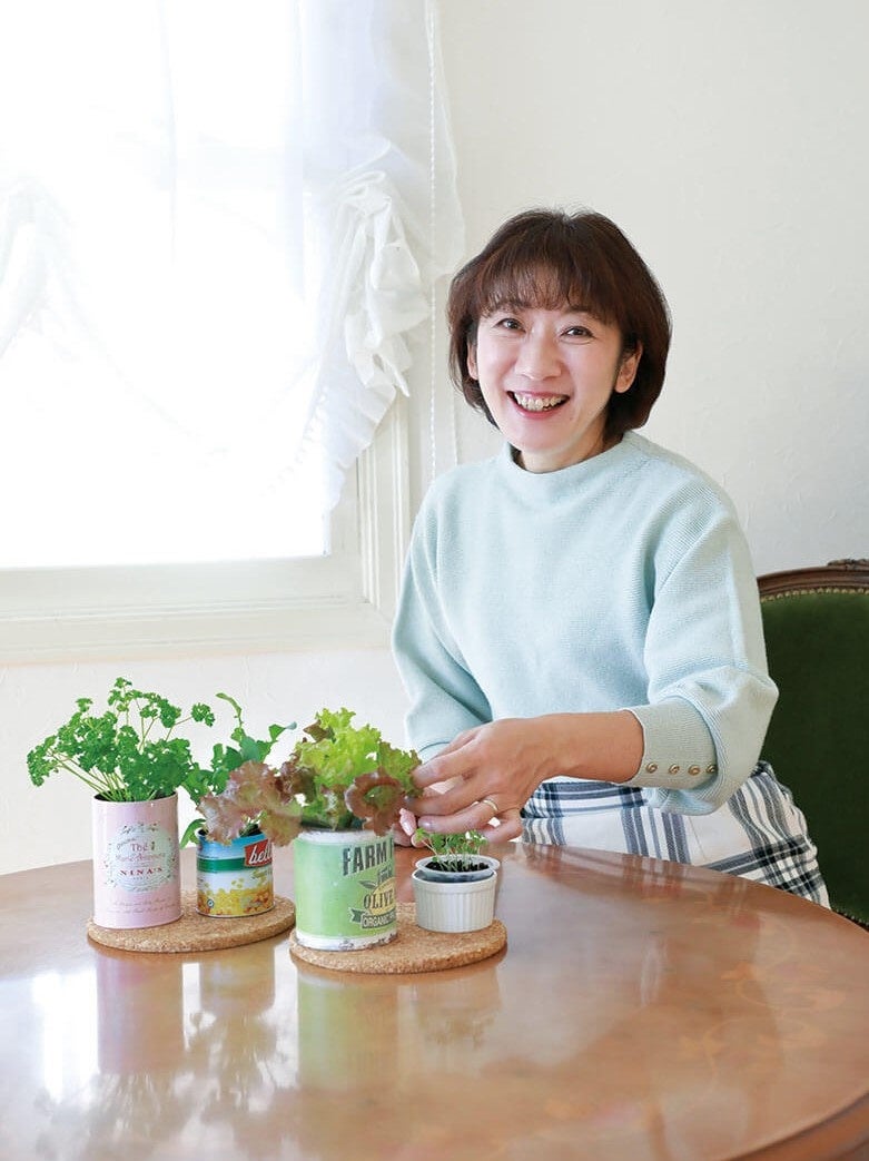 お部屋に窓辺さえあれば、空き容器や⾷器など、⾝近にあるものを使って、⼈気の野菜やハーブを、気軽に育てることができるんです。