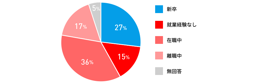 就業状況:新卒35名、就業経験なし20名、在職中48名、離職中22名、無回答7名