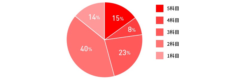 科目合格以上内訳:5科目13名、4科目7名、3科目19名、2科目34名、1科目12名