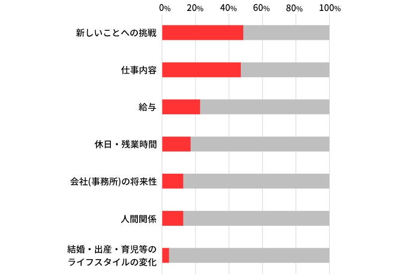 過去のアンケート結果と同様に、「新しいことへの挑戦」「仕事内容」など、自身のキャリアを考えて就職・転職を検討することが分かる。
