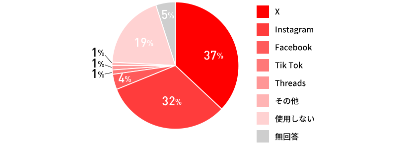 2023summerと同様に、「X(元Twitter)」「Instagram」が多く使用されている。
