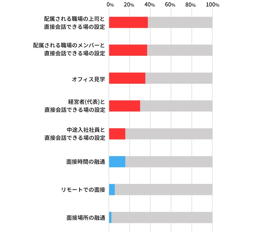 特に、直接会話する機会やオフィス見学など、雰囲気を直に感じることができる機会が必要とされている。