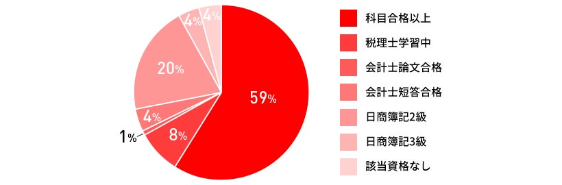 資格取得状況:科目合格以上85名、税理士学習中12名、会計士論文合格1名、会計士短答合格6名、日商簿記2級29名、日商簿記3級6名、該当資格なし5名