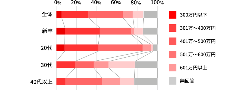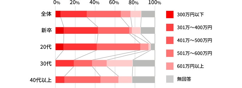 全体では「401万~500万円」の層が最も多く、2022年winterと同様の結果となった。