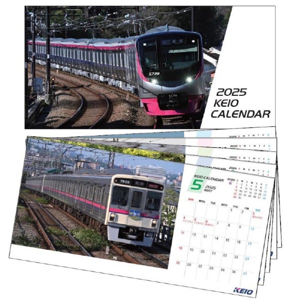 から「2025年京王電鉄卓上カレンダー」と「2025年京王電鉄壁掛けカレンダー」