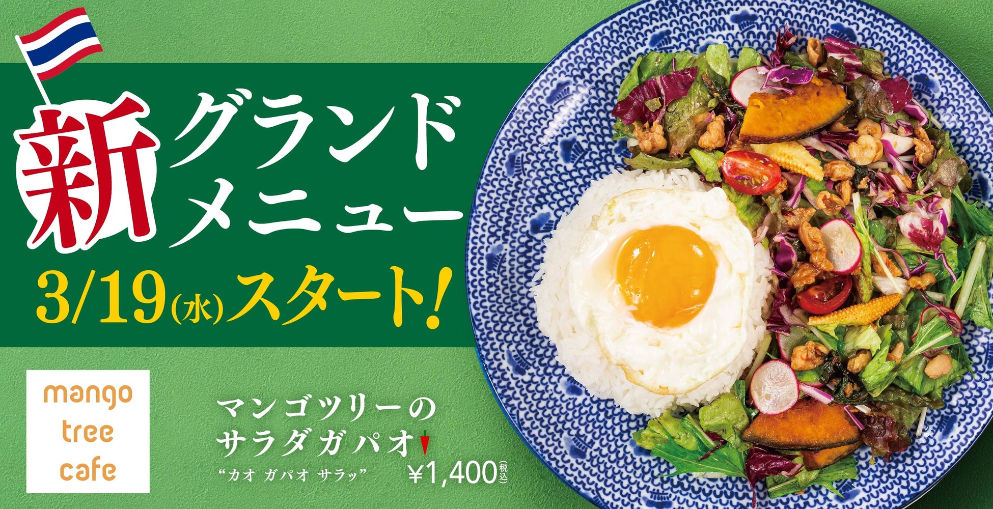 アークランドサービスホールディングス株式会社の子会社、海外の本場の味を日本で展開する株式会社ミールワークス(本社:東京都千代田区、代表取締役社長:船橋 洋治、以下MW)は、タイ・バンコクに本店をもつ「マンゴツリー」の姉妹店で本格タイ料理を日常的に楽しめる「マンゴツリーカフェ」にて、2025年3月19日(水)より「マンゴツリーのサラダガパオ」をはじめとする新グランドメニューを販売いたします。
