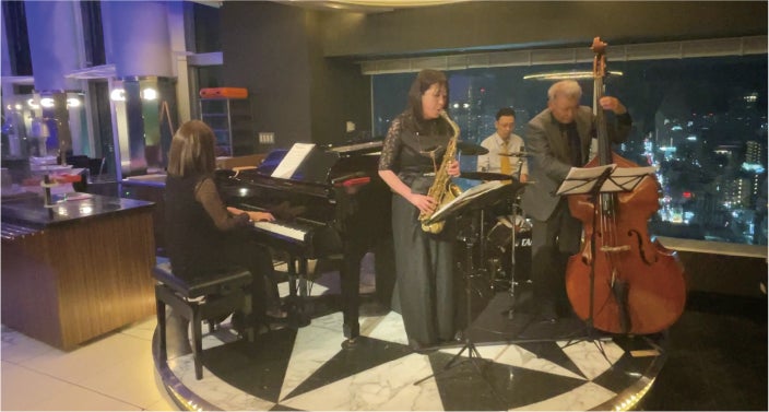 アプローズのジャズ生演奏は落ち着いた雰囲気の中で、グラスを片手に音と岡山市街の煌めく夜景をお楽しみいただけます。