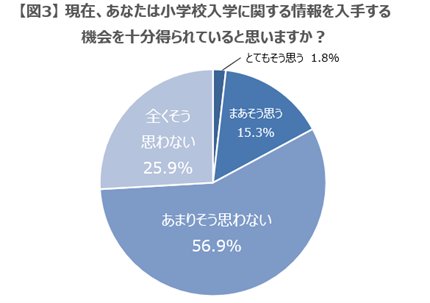 ・「小学校入学に関する情報を入手する機会を十分得られていない」と感じる保護者は8割を超える(まったく+あまりの合計)