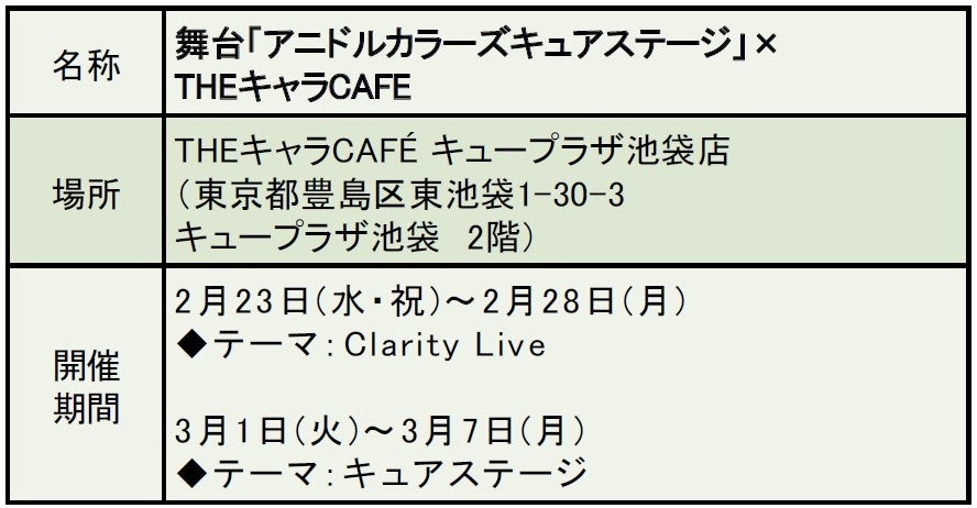舞台「アニドルカラーズキュアステージ」×THEキャラCAFE特設サイト:https://www.the-chara.com/blog/?p=40464