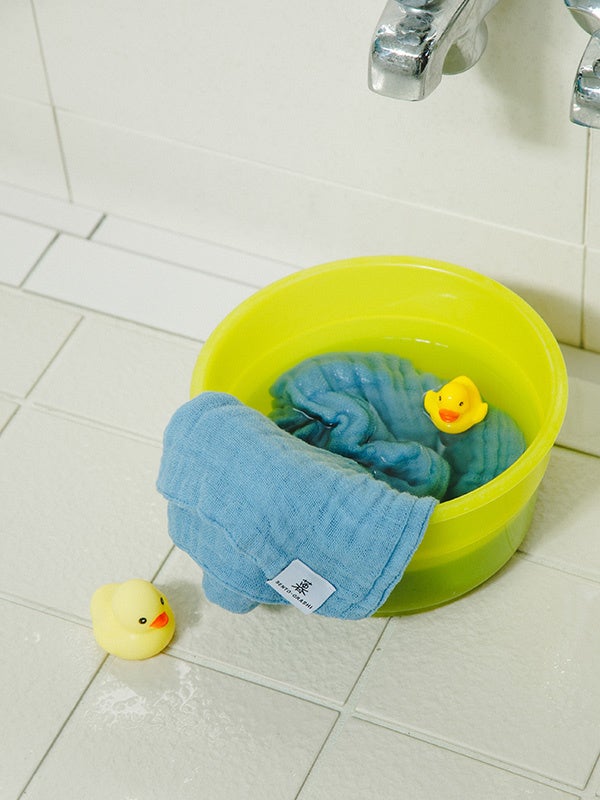 吸水性に優れた天然素材 綿100%の蚊帳生地を5枚重ねた、お風呂専用手ぬぐい「湯ぬぐい」。