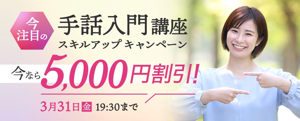 今話題の手話入門講座が5,000円割引!2023年2月1日(水)より『スキルアップキャンペーン』を開始!