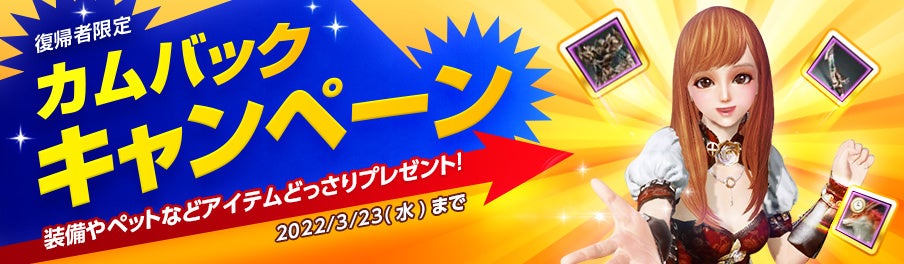 ■復帰者限定!冒険に役立つアイテムをまとめてプレゼント!「カムバックキャンペーン」開催