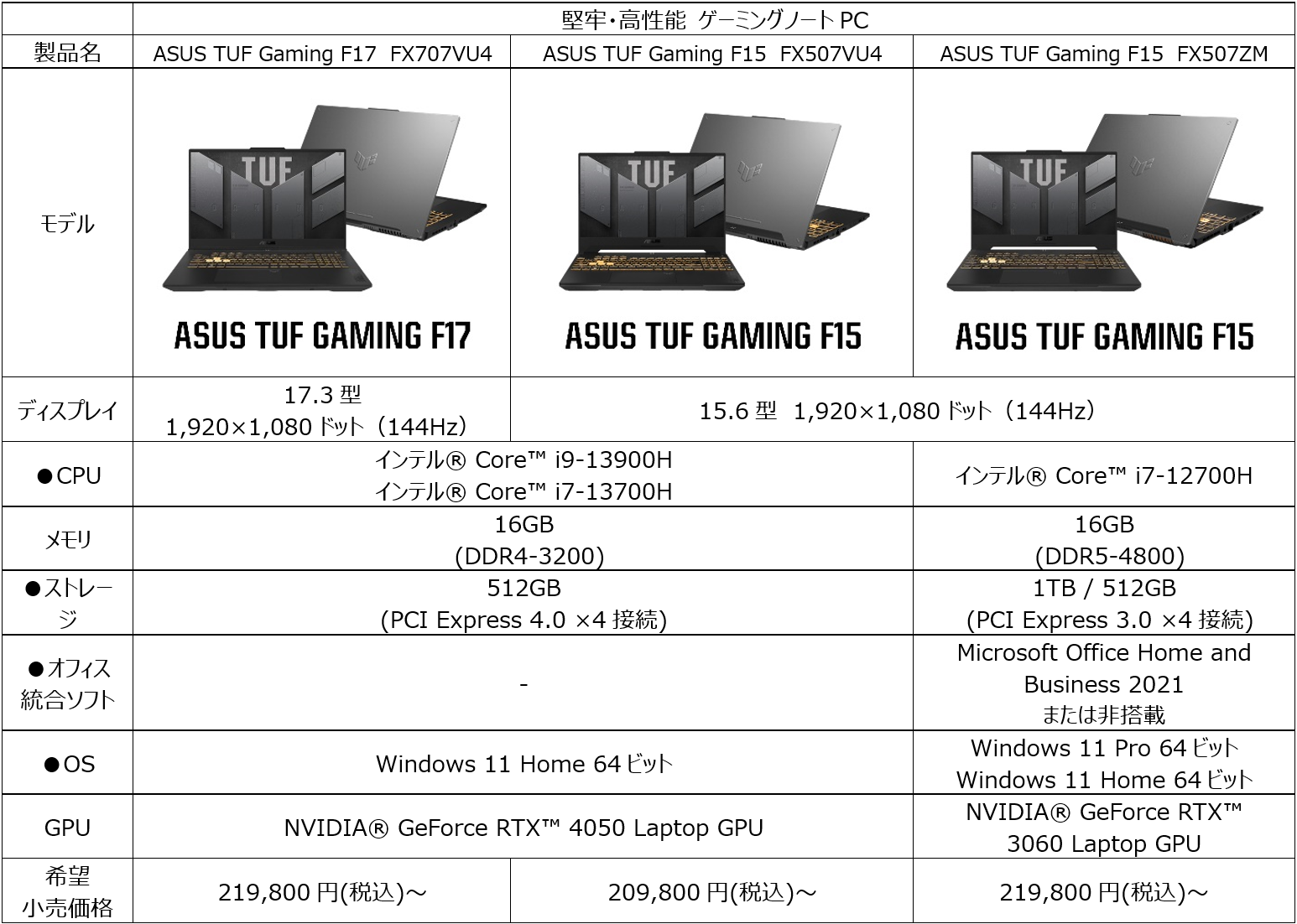 「ASUS Direct」対応製品ラインナップ