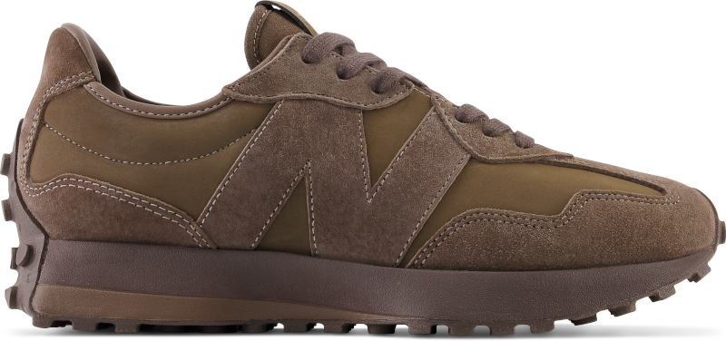70年代を席巻した数々のニューバランスのレーシングシューズをアレンジしたレトロなフォルムに、ビッグ「N」ロゴを外側だけに配した印象的なルックスで提案する人気モデルの「327」。シックにモノトーン調のオールブラウンにブラッシュアップ。アッパーには毛足の短いブラシュドヌバックとマット調のシンセティックヌバックを組合せ、タンには通気性に優れたメッシュを採用し、様々な異素材の組み合わせで立体感を表現。