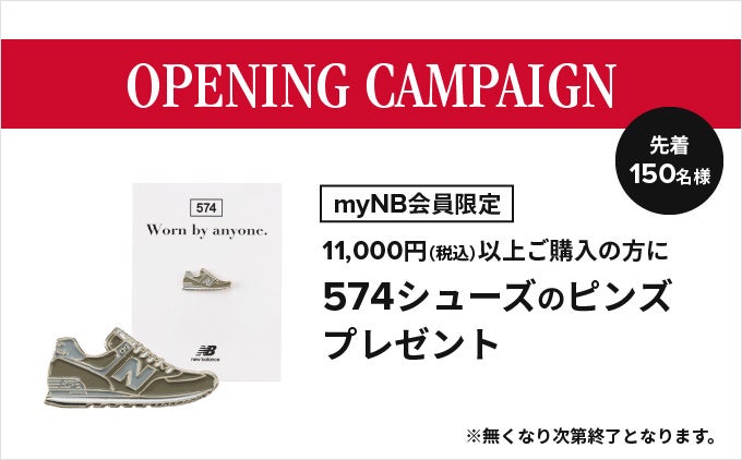 9月22日(金)のオープン日より、myNB会員様を対象に、11,000円(税込)以上ご購入の先着150名様に、ニューバランスの「574」をデザインしたピンズをプレゼントいたします。