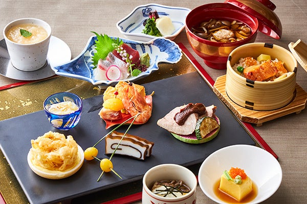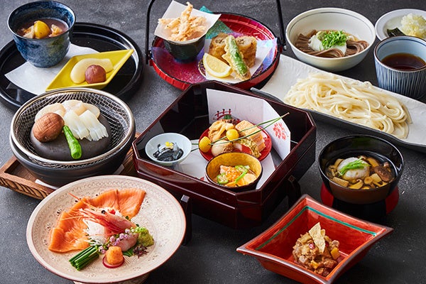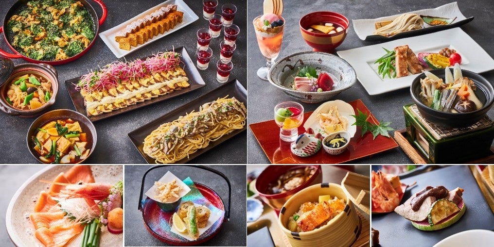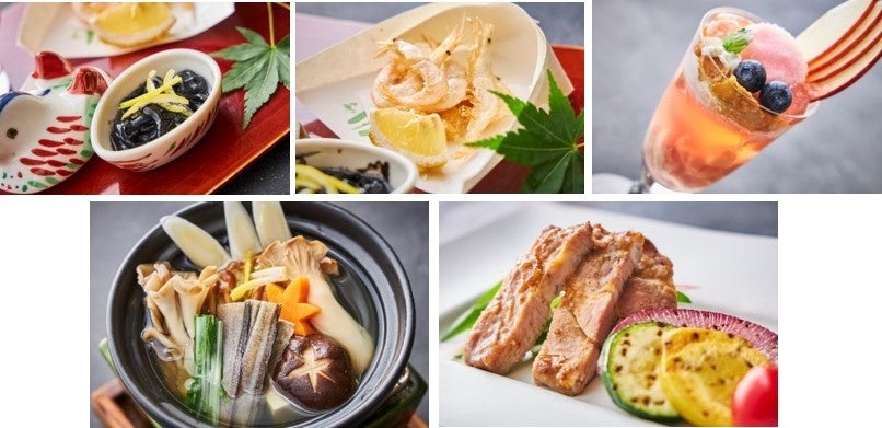 長野県木曽地方の郷土料理で冠婚葬祭に欠かせない「大平(おおびら)」は、大いなる大地を意味し、大地の恵みである野菜を集めて煮込んだものと言われています。優しい野菜の甘さが際立つ一品です。「富山県産鰤の炙りカルパッチョ オニオンピュレ レモンヴィネグレット」は、炙り焼きにして香ばしさをプラスした肉厚の鰤に、程よい甘さのオニオンピュレとレモンの酸味でさっぱりお召し上がりいただけるように仕立てました。「長野県産野菜入り厚揚げのオイスターソース煮込み」は、長野県産の小松菜や長芋を中国料理の定番調味料オイスターソースと合わせることで、うま味と深い味わいを感じられる煮込み料理になっています。スイーツでは富山県の米粉を使い、しっとりとした食感と程よい甘さをお楽しみいただける「富山県産米粉のキャラメルパウンドケーキ」をご用意いたします。また、11月1日~6日頃までは富山県産米「富富富(ふふふ)」を、11月7日頃~30日は長野県オリジナル米「風さやか」をご賞味いただけます。その他にも、日本料理・西洋料理・中国料理・スイーツの各専門シェフの珠玉の料理の数々を余すことなくご堪能ください。
