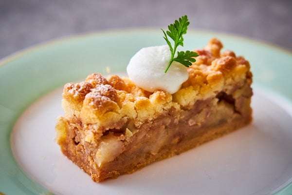 糖度が高く、酸味は弱めで優しい甘さが魅力の長野県産のりんご「シナノスイート」を煮詰めて、サクサクで口溶けのいいクランブルと合わせた秋を感じるスイーツです。