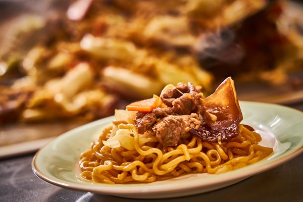 蒸した太めの中華麺に、羊肉と炒めた野菜を加えた長野県伊那地方のソウルフード「ローメン」。ラーメンとも焼きそばとも異なる独特な風味の料理を、中国料理のシェフがお客さまの目の前でお作りします。七味唐辛子などの薬味を加えて、ご自身にあったお好みの味を見つけてください。