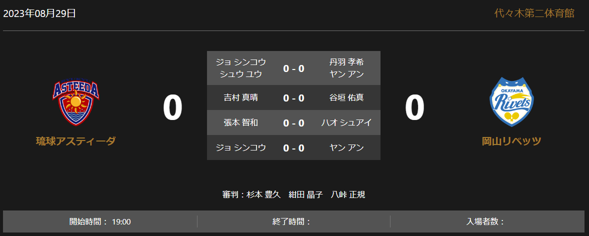 ノジマTリーグ 2023-2024シーズン 公式戦 8月29日開催 琉球アスティーダ vs 岡山リベッツ ベンチ入り選手発表