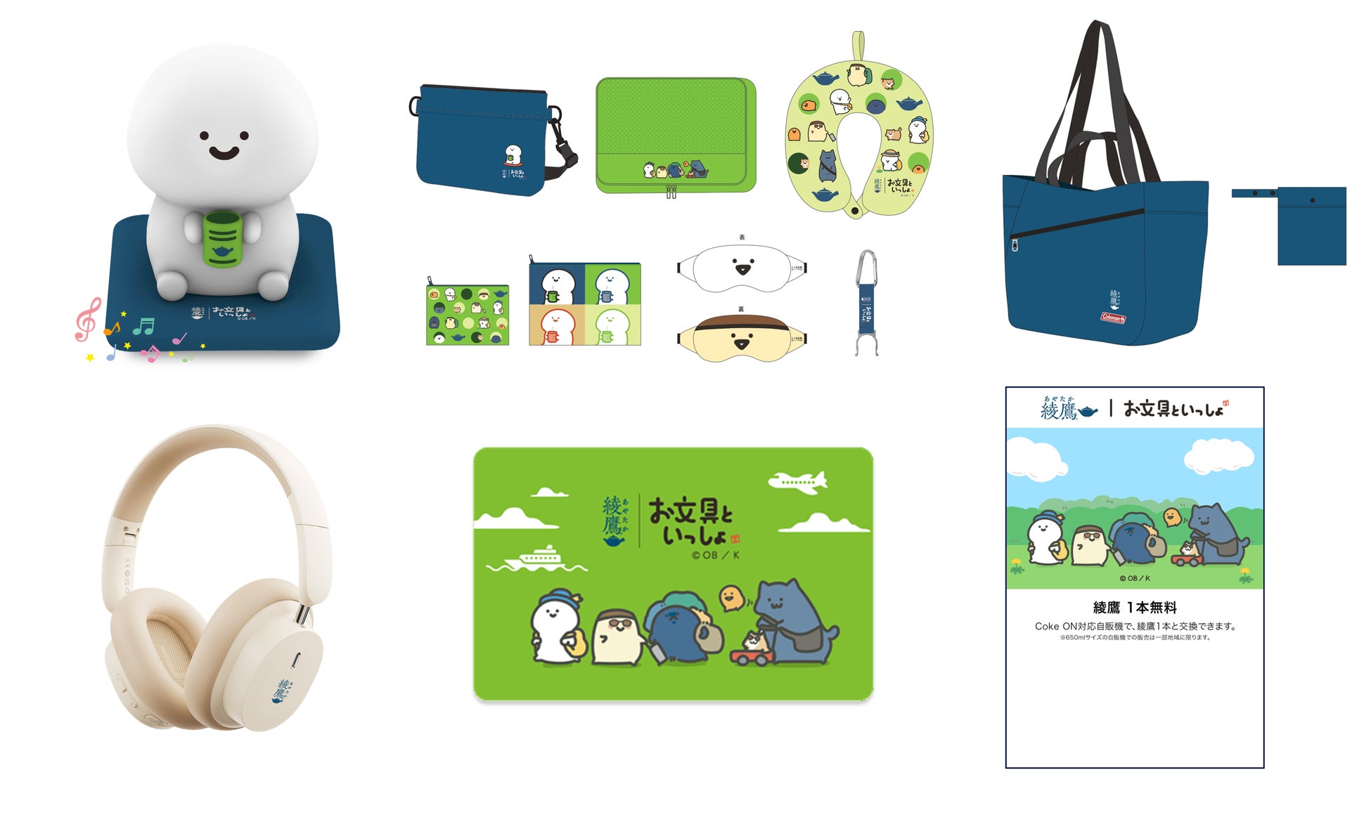 10月6日(月)より、対象の「綾鷹」・「綾鷹カフェ」のキャップ裏のコードをコカ・コーラ公式アプリ「Coke ON」でスキャンすることで、「綾鷹」と「お文具といっしょ」のコラボレーションアイテムや、「綾鷹オリジナル ヘッドフォン」、トラベルギフト、秋のおでかけを楽しむグッズが当たるキャンペーンを実施します。また、応募するたびに限定デザインのCoke ONスタンプ、ポイント応募者全員に「綾鷹」と「お文具といっしょ」のオリジナルLINEスタンプを必ずプレゼントします。