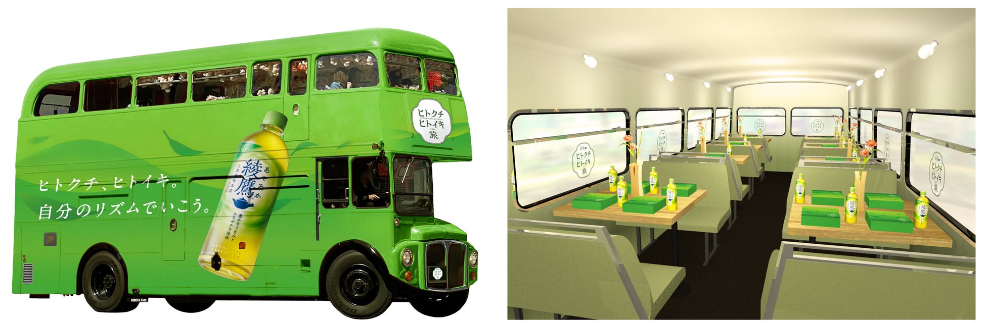 様々な情報が溢れかえり、自分のペースやリズムが乱れがちになる現代。「綾鷹」では、今春、「ヒトクチヒトイキ茶室」を渋谷で4日間限定開催し、多くの方に「綾鷹」でヒトイキできる特別な体験をお届けしました。春に続き、秋の行楽シーズンに混み合う街中でも「綾鷹」を飲んでヒトイキつき、自分のリズムを取り戻していただきたい、という思いで、「動くヒトクチヒトイキ茶室」をコンセプトに特別イベント「綾鷹 ヒトクチヒトイキ旅」を実施します。