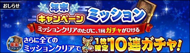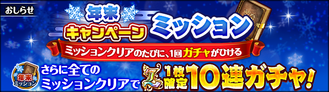 2021年12月17日(金)16:00〜1月7日(金)15:59 ミッション達成可能、およびガチャ実行可能期間予定