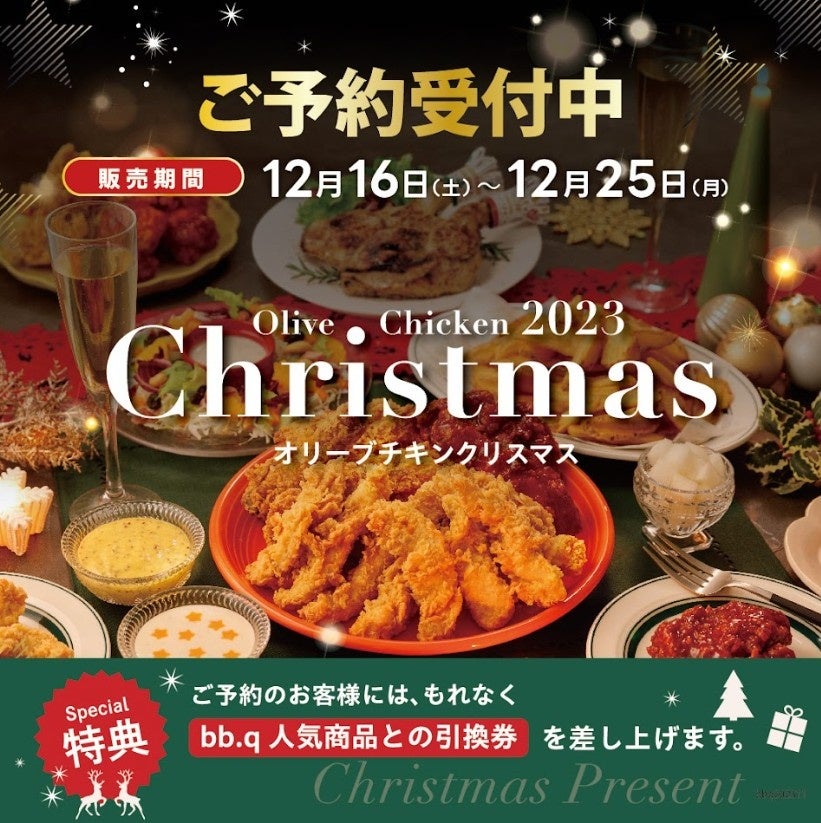 クリスマス予約特設ページ https://bbq-olivechickencafe.jp/xmas2023 にてご予約受付中です。