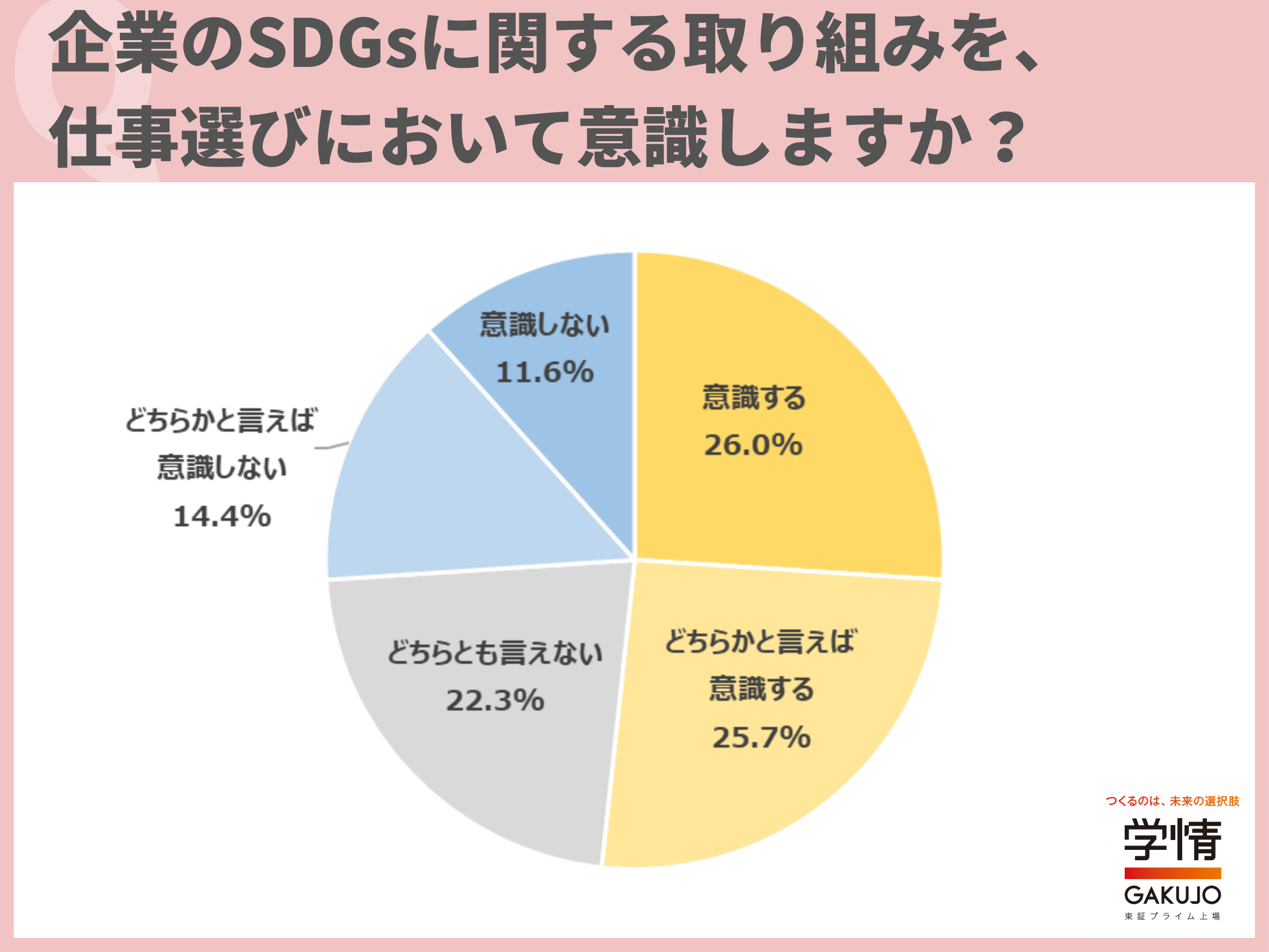 企業のSDGsに関する取り組みを、仕事選びにおいて「意識する」「どちらかと言えば意識する」と回答した学生が51.7%に達しました。半数以上の学生が、仕事選びにおいてSDGsを意識していることが分かります。「仕事を通して社会課題の解決に貢献したい」「社会課題の解決に貢献する企業でないと、今後社会と良好な関係を築けないと思う」といった声が寄せられました。