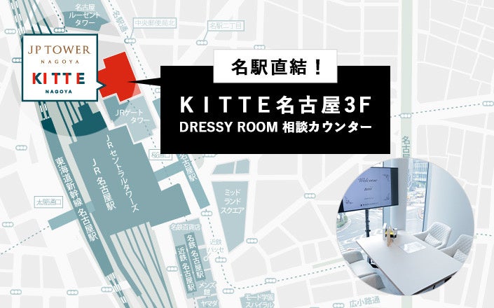 おすすめコンテンツDRESSY ROOM NAGOYAは他にはない体験型のカウンターです。相談カウンターブースでは様々な結婚式相談が可能。全国のエリアの1700以上にもなるPLACOLE & DRESSY認定会場をご紹介いたします。結婚式場相談はもちろんのこと、フォトウェディング、少人数挙式、リゾート挙式、見積もり相談なのど、結婚式に関連する様々な内容が相談可能となっております。そして相談をしながら、様々なウェディングを体験できる体験型相談サロンとなっております。ドレス試着体験やフォト撮影体験可能。業界初の“体験型”花嫁相談カウンターで、それぞれの検討状況に合わせてコンテンツをご案内いたします。