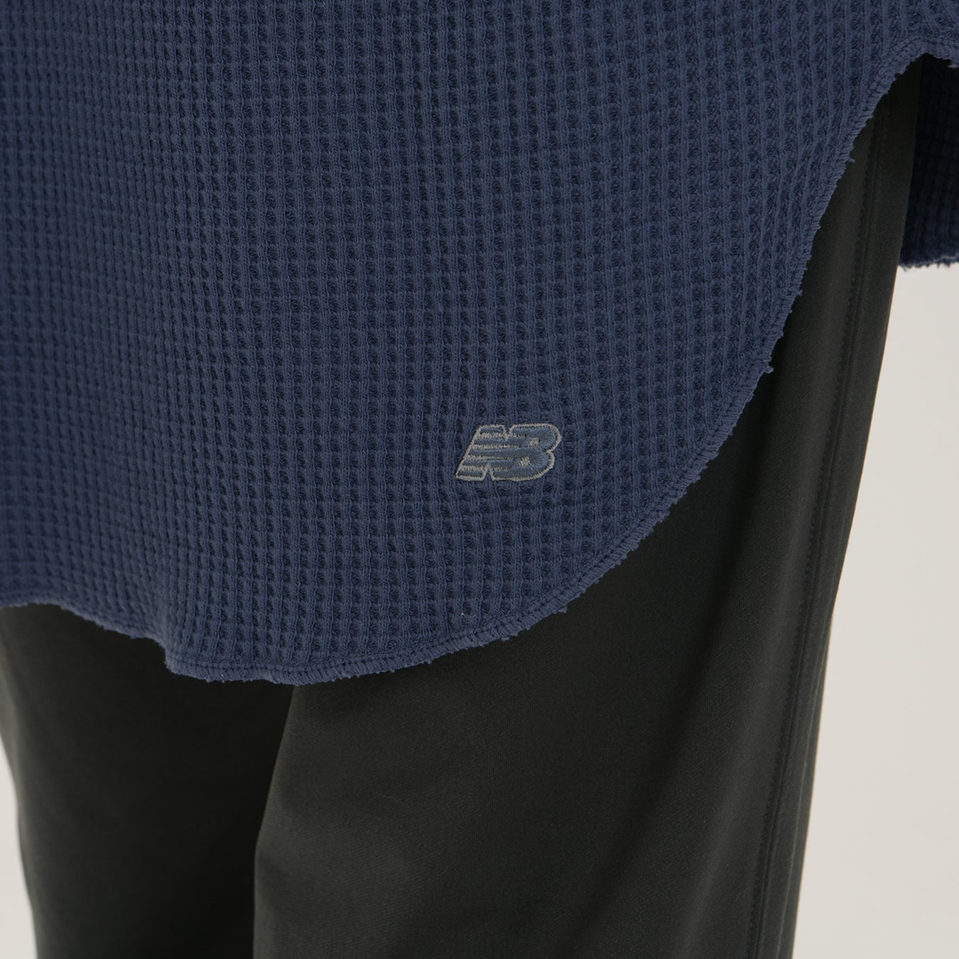 ロングスリーブTシャツには、記事表面の凹凸の大きいビッグワッフル素材の肌ざわりのいい生地を使用。ワッフルの目を大きくすることで肌との接触面を減らし、よりやわらかな着心地を実現。