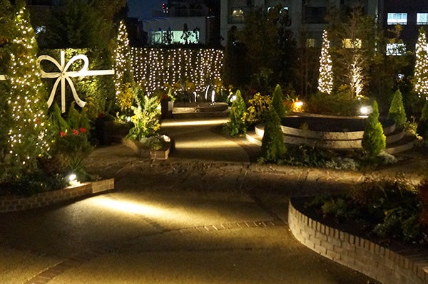 都会の中に現れた、空と緑に包まれた開放的なガーデンでは、期間限定の煌めくイルミネーションがクリスマスを彩ります。