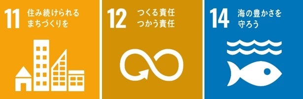 目指すSDGsのゴールは、11個目「住み続けられるまちづくりを」、12個目「つくる責任つかう責任」、14個目「海の豊かさを守ろう」です。