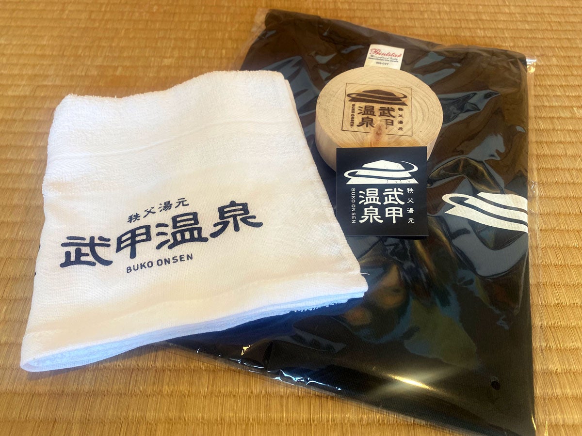 さらに、連続で5泊以上ご利用いただき、全札所を巡った方へは、武甲温泉オリジナルギフトセットをプレゼントいたします。(Tシャツ/タオル/ヒノキ/ステッカー)