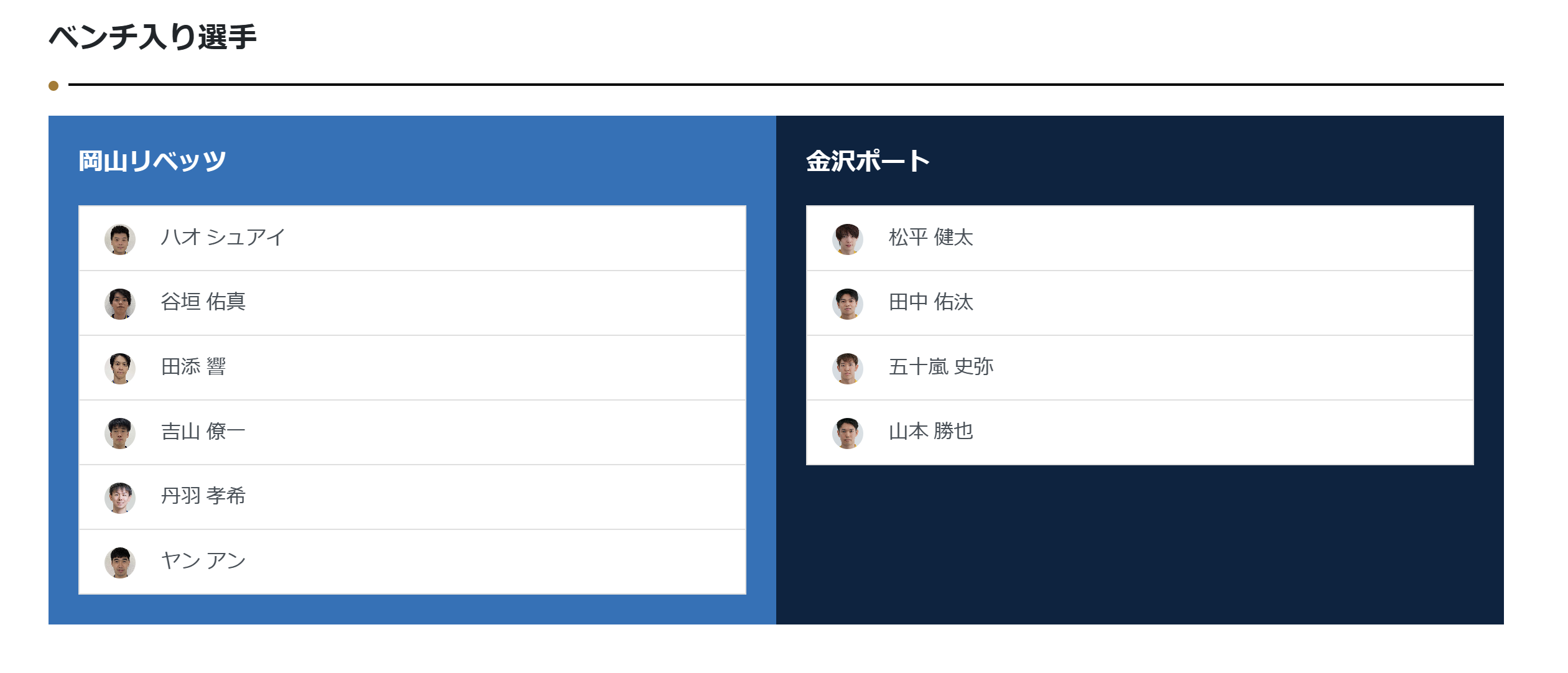 ノジマTリーグ 2023-2024シーズン 公式戦 8月30日開催 岡山リベッツ vs 金沢ポート ベンチ入り選手発表