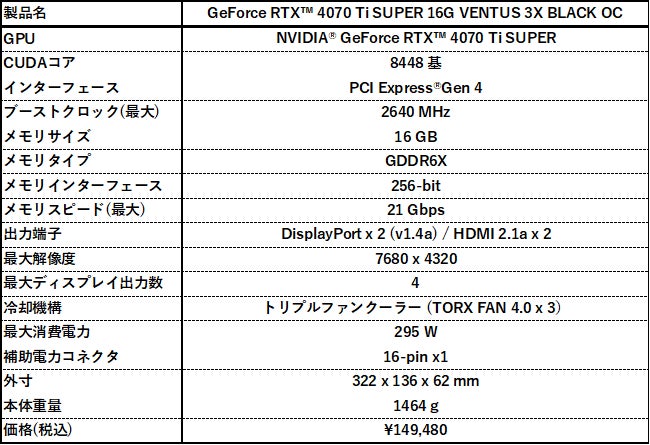 「GeForce RTX™ 4070 Ti SUPER 16G VENTUS 3X BLACK OC」を発売開始