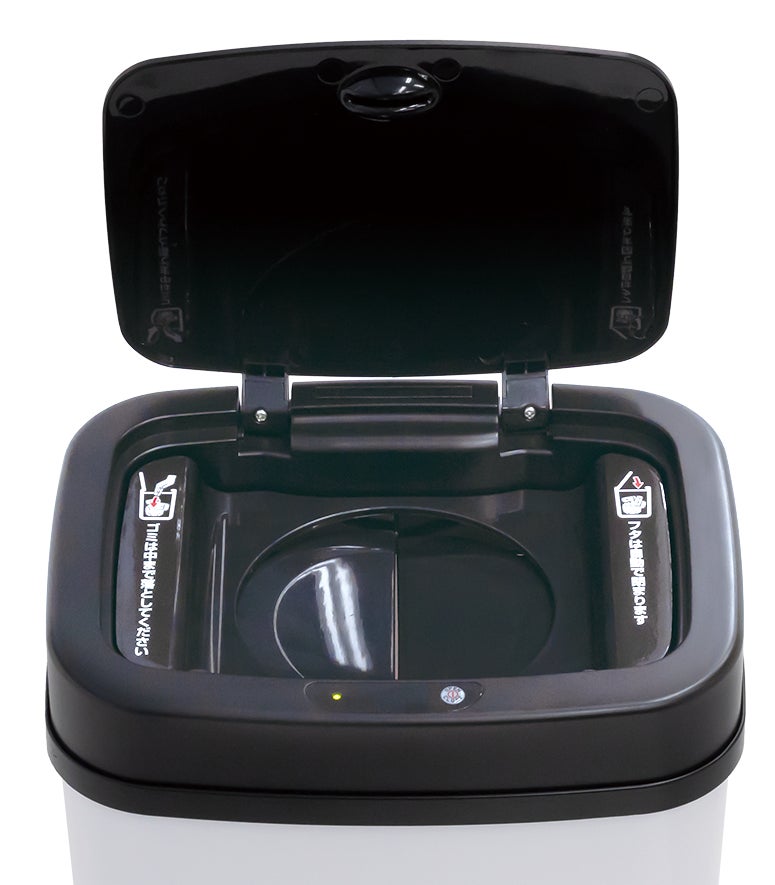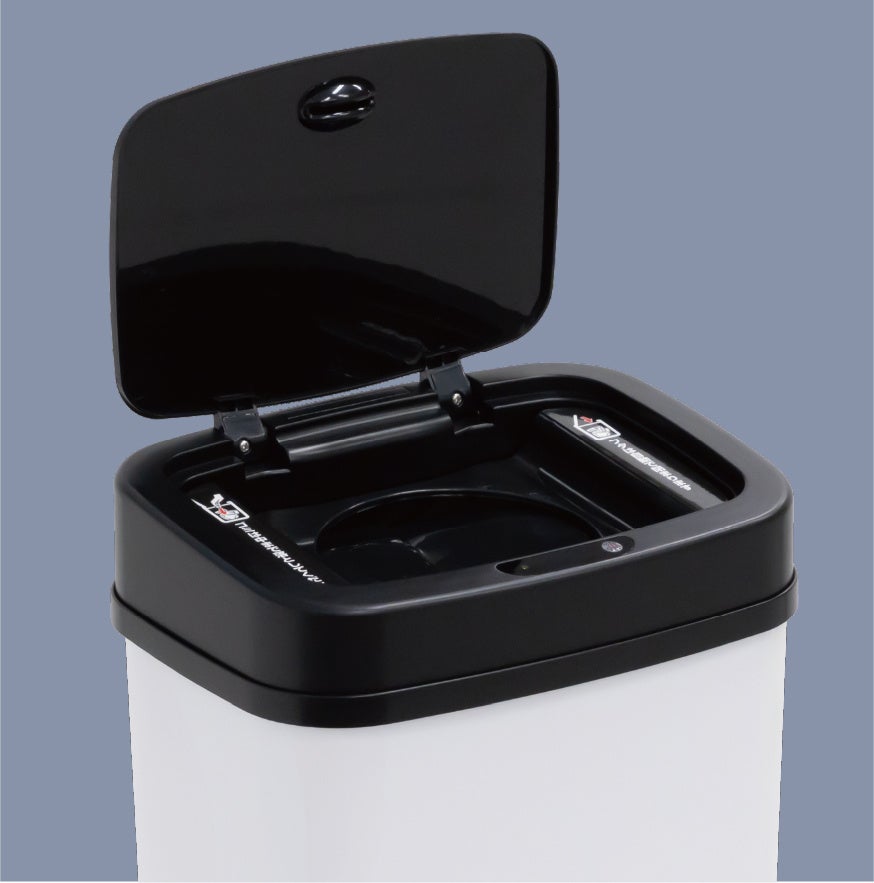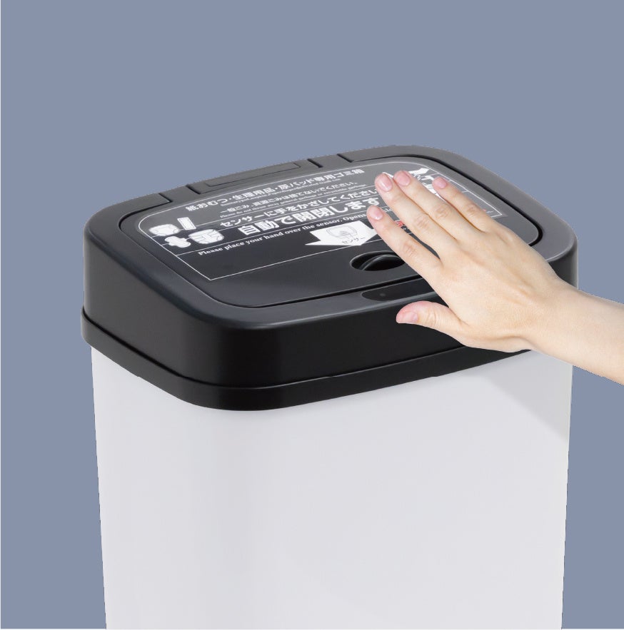 人感センサーにより手をかざすだけでフタがオープンし、その後、約3秒後に自動で閉まります。