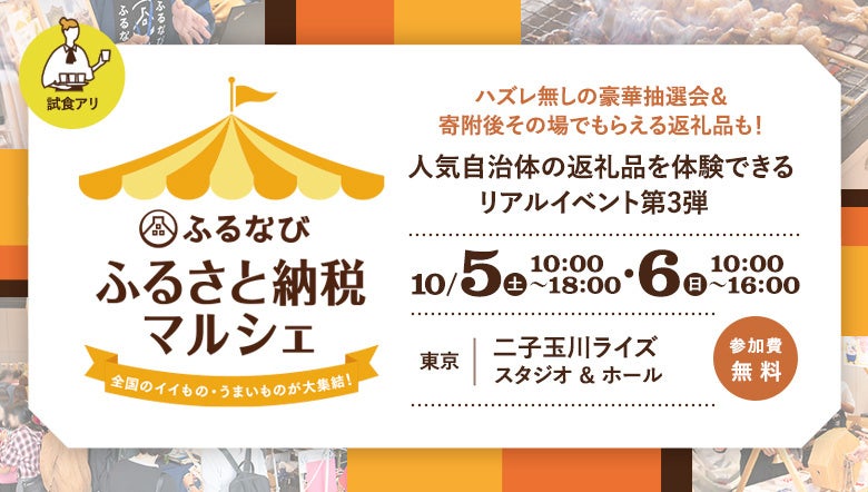 【昨年来場者約9,000人!大人気イベントが今年も開催決定!】32自治体が二子玉川に大集結!リアルイベント「ふるなび ふるさと納税マルシェ」が10月5日(土)・6日(日)に開催