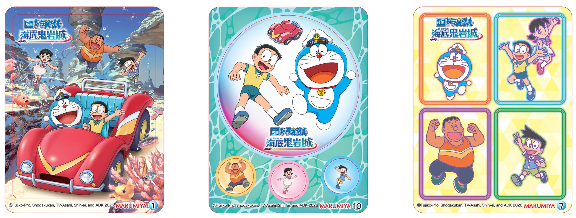 丸美屋オリジナルの「ドラえもん キラキラシール」(全10種)のデザインを全てリニューアルし、映画限定デザインに刷新いたします。