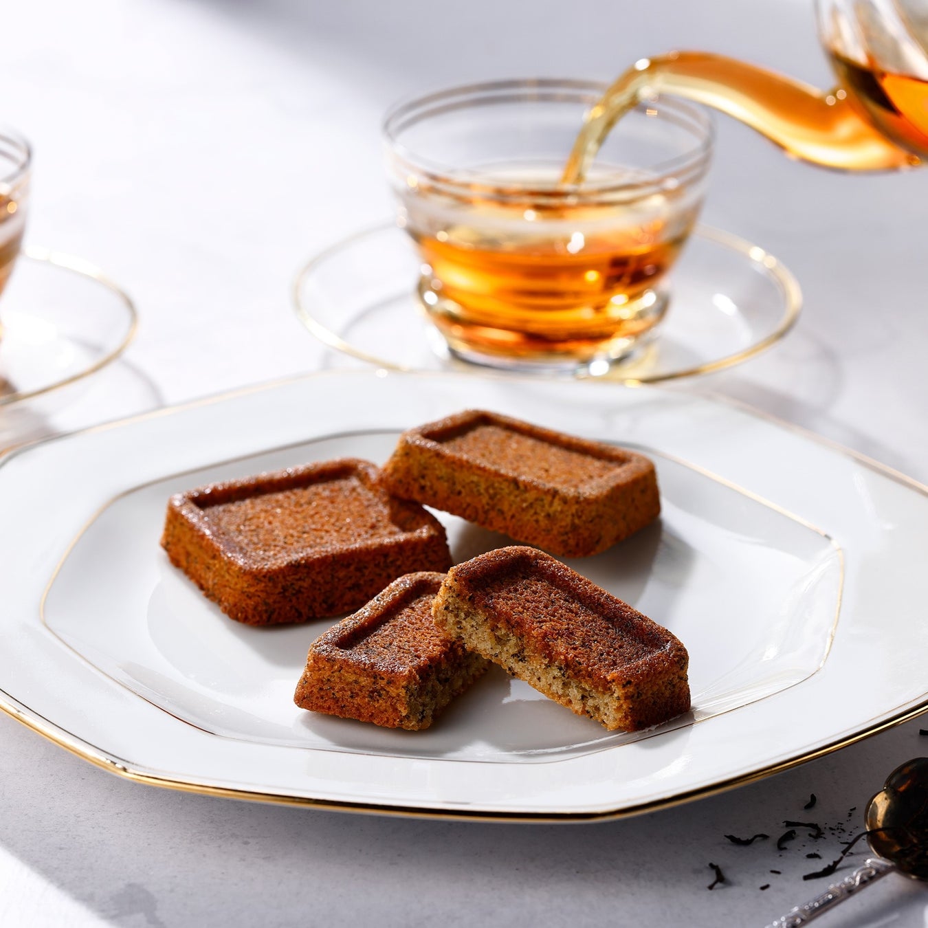 ヨーロッパ産発酵バターとアールグレイ茶葉を練り込んだ、バターとベルガモットの華やかな香り漂うフィナンシェでございます。
